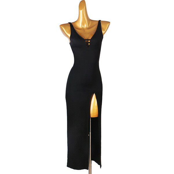 社交ダンス ラテンドレス ラテンダンス衣装 ワンピース ロング丈 スカート ラテン衣装 練習服 チャチャチャ サルサ ルンバ 競技 レッスン着 ダンスウェア タンゴ セクシー Vネック キャミソール スリット入り ブラック 黒 S M L XL 2XLdb068s1s1jc