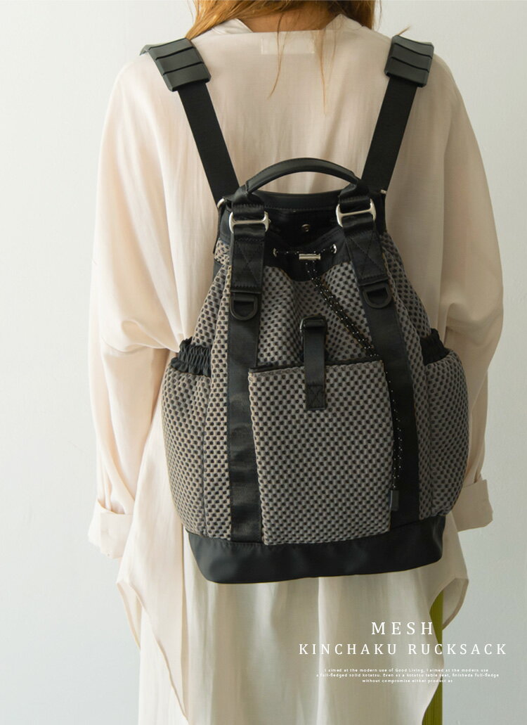 [型番:vubb-sp-0138]【デザイン】女性らしいサイズ感と実用性を兼ね揃えたメッシュ巾着リュックサック。