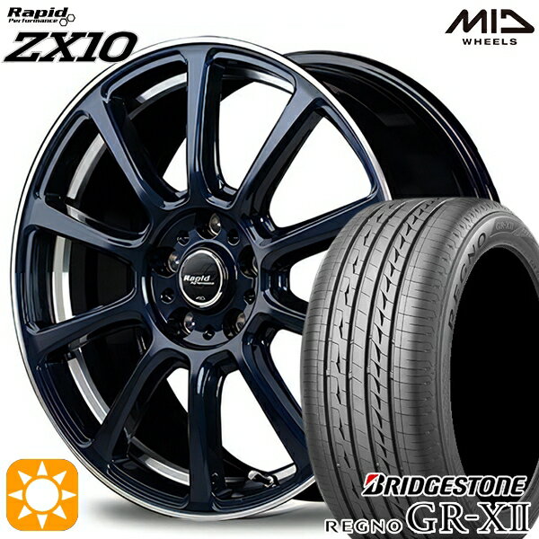 オデッセイ レヴォーグ 225/45R18 95W XL ブリヂストン (BRIDGESTONE) レグノ GR-X2 MID ラピッド ZX1018インチ 7.5J 5H114.3 ADブルー+リムエッジDC+アンダーカット 新品サマータイヤホイール 4本セット【送料無料】